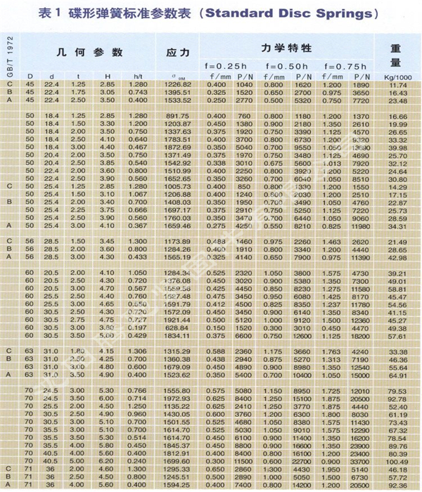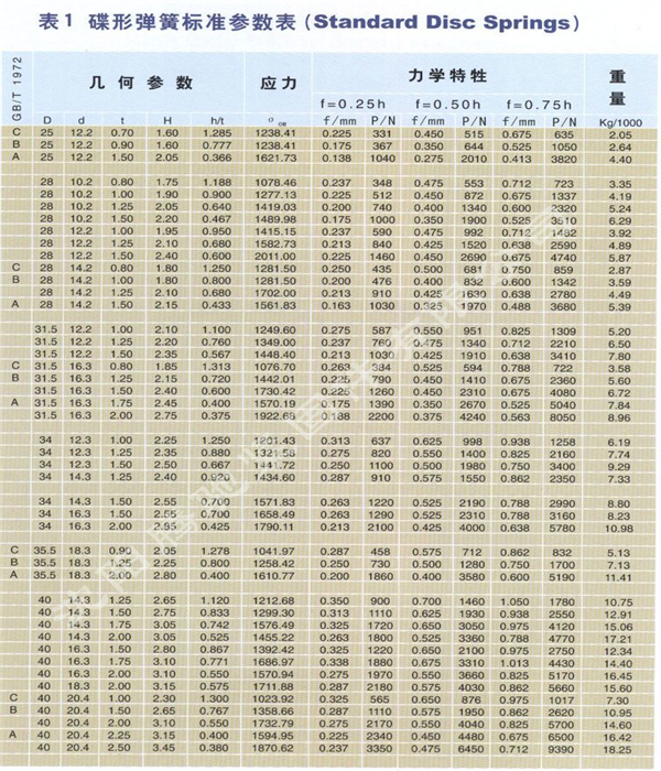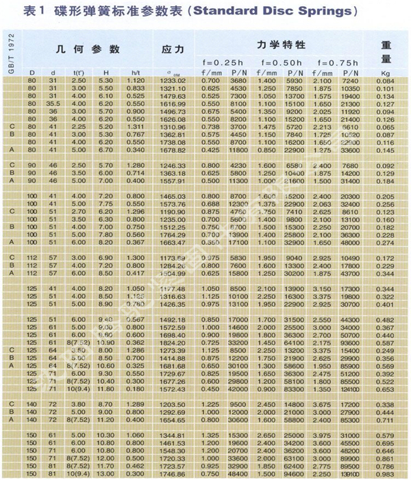 3.用同样的碟形弹簧采用不同的组合方式,能使弹簧特性在很大范围内变化。可采用对合、叠合的组合方式,也可采用复合不同厚度,不同片数等的组合方式。